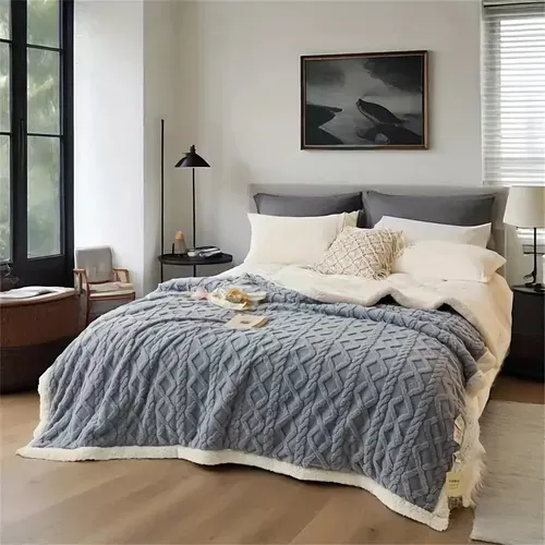 Envuélvete en la suavidad y el confort de esta manta premium, diseñada para brindar calidez durante todo el año. Su textura delicada y su acabado de alta calidad la convierten en el complemento perfecto para tu sofá o cama.